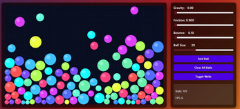 interactive physics with gravity, bouncing balls realistic physics with mass, velocity, acceleration, and collision.